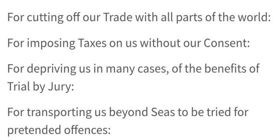 Fighting for due process is in our national DNA. It dates back to the Declaration of Independence, where Thomas Jefferson and his co-writers included a list of grievances about King George III to justify the decision to rebel. The 16th-19th grievances are sadly all too relevant today:
