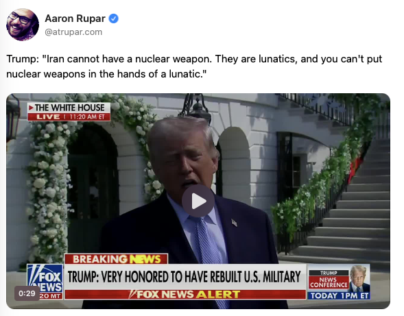 Today, though, for the first time, it’s the president who represents and unstable and reckless part of the nuclear equation. Trump, after all, is someone who thinks we could even use a nuclear weapon to defeat a hurricane. We have no idea how the coming weeks of the Iran war will unfold, but does anyone think Donald Trump’s going to be less unhinged and more stable and more thoughtful as the US strategy continues to flounder? We seemed poised — perhaps even this week — to launch ground missions against Iran. And Iran is actually wealthier and more powerful geopolitically today than it was at the start of the war.